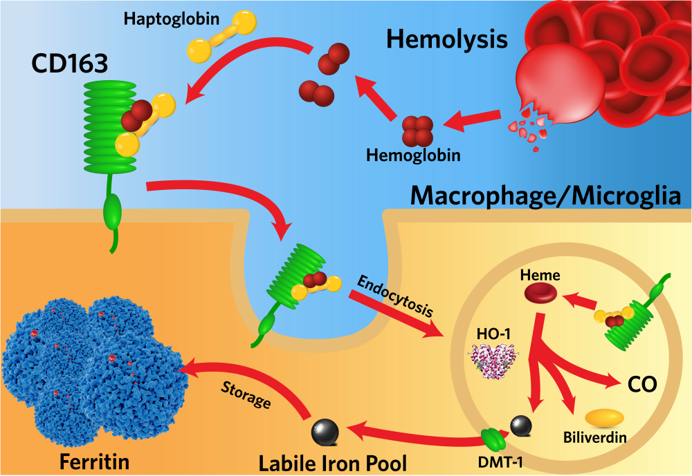 Physiological systems have evolved to control plasma free hemoglobin levels when intravascular hemolysis occurs. For example, Hb dimers bind with high affinity to serum haptoglobin (Hp) and the complex is captured by the CD163 Hb receptor present on macrophages, internalized and degraded. However, the effectiveness of these strategies is often exceeded in pathological hemolytic conditions: since HP is not recycled, its rapid depletion is observed in severe hemolytic conditions.